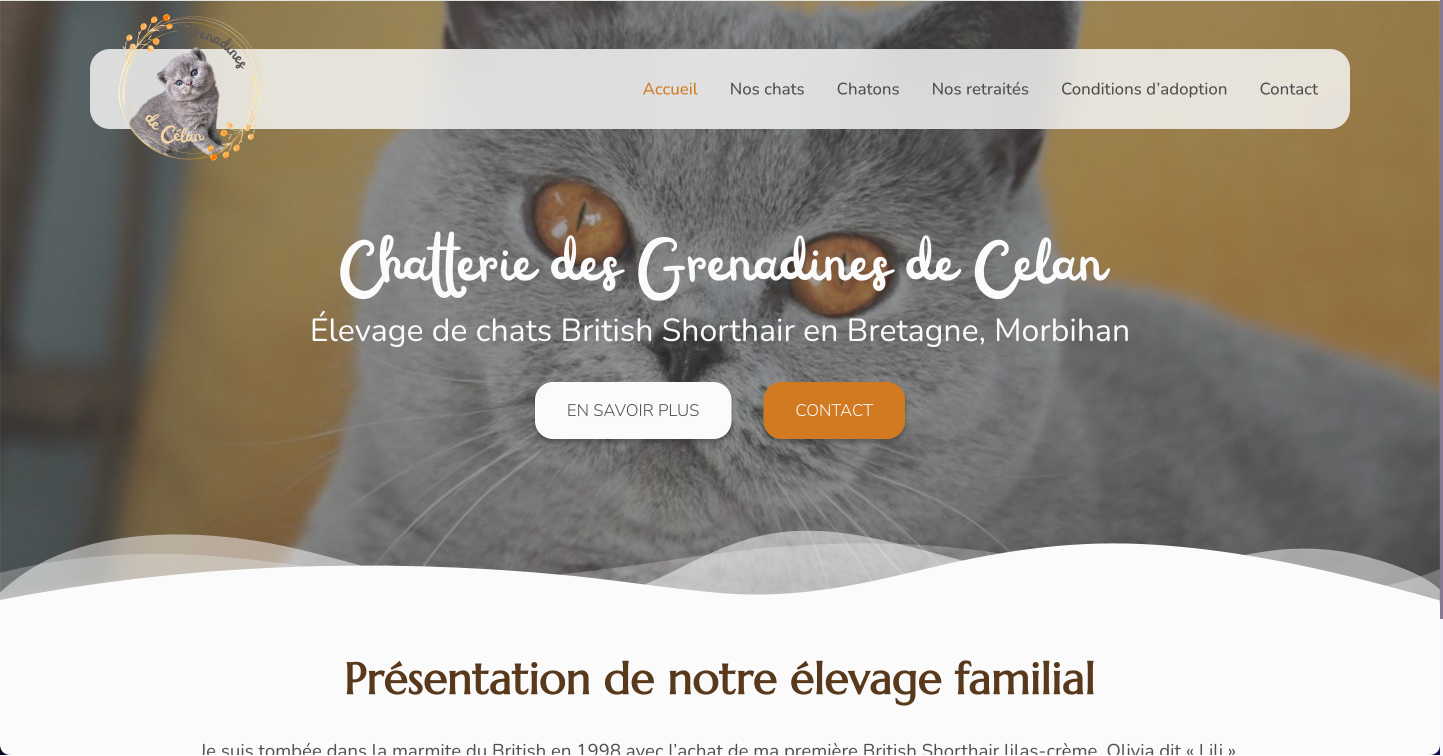 Site web vitrine d’un élevage de British Shorthair en Bretagne.
